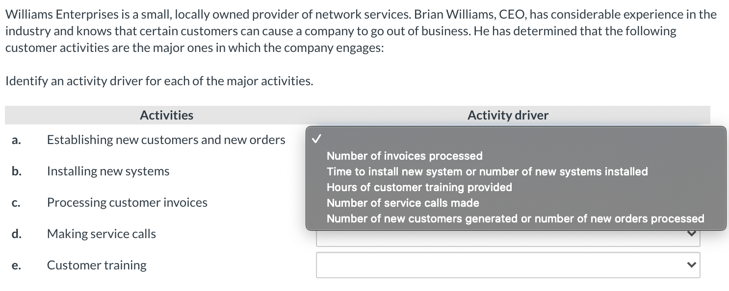 Solved Williams Enterprises Is A Small Locally Owned Chegg Com